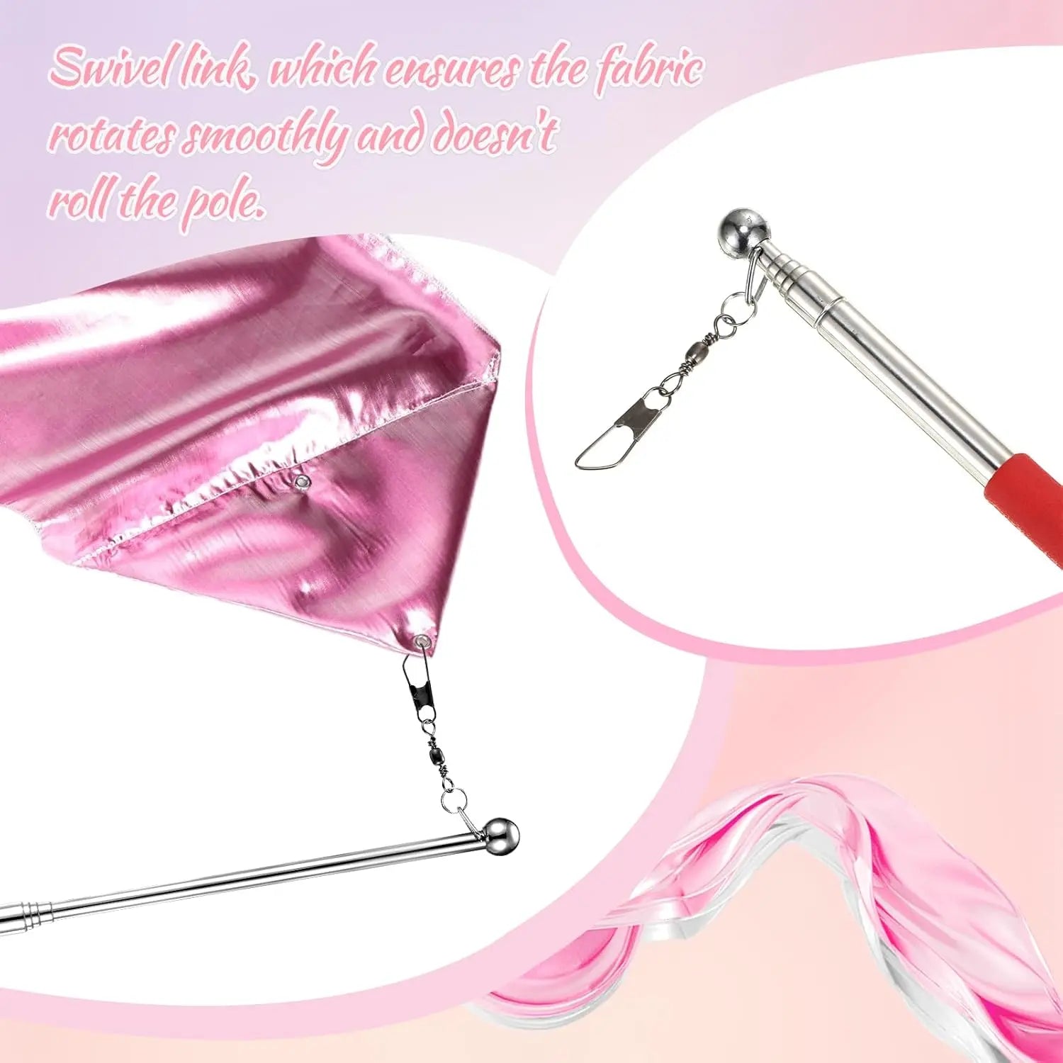 3. Durability and Ease of Use: constructed with fine stitching, these ribbons are flexible and resistant to wear and tear; The retractable fiberglass rod adds to its durability, allowing for smooth and effortless waving; The easy assembly and storage features make it convenient for frequent use