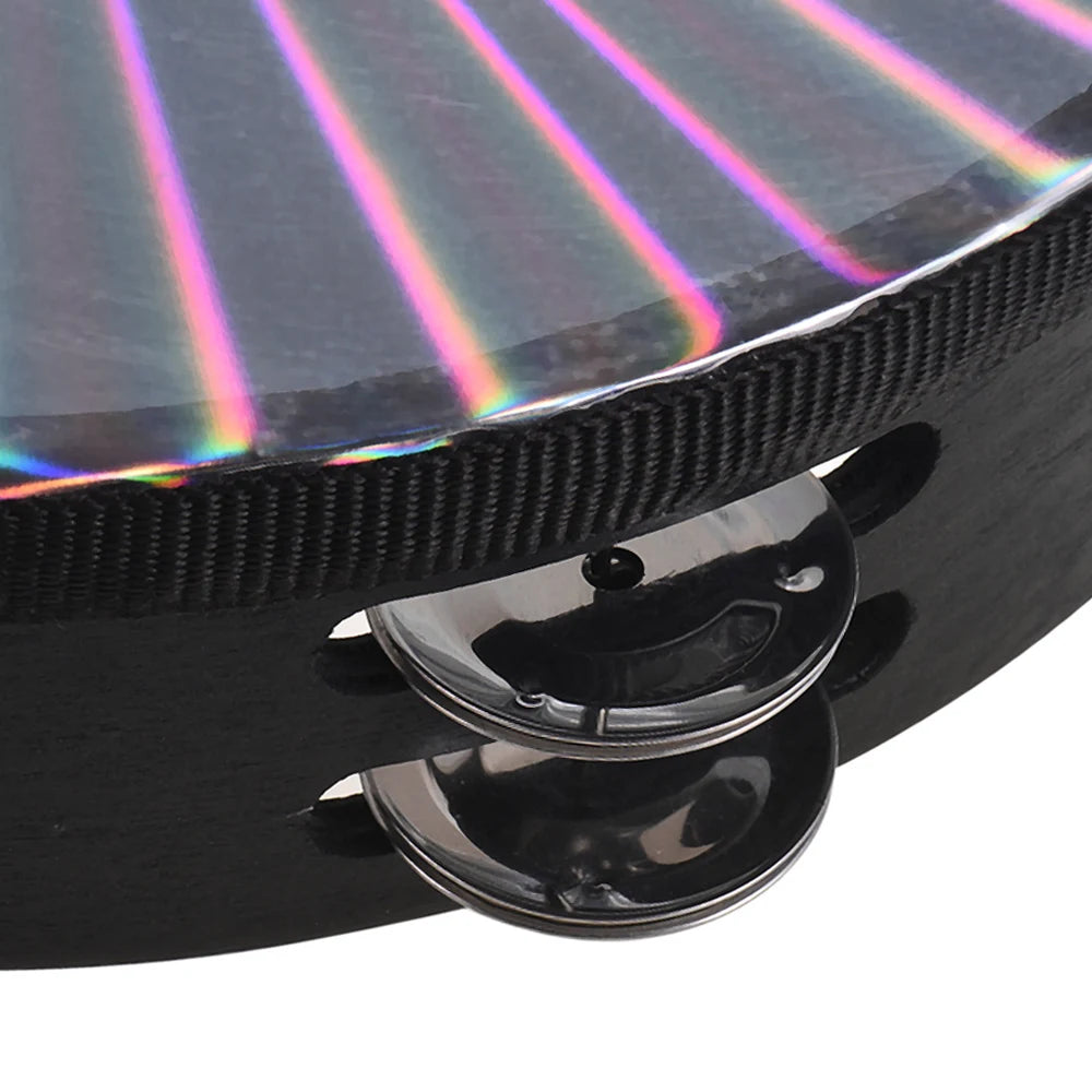 8 Inch Wooden Radiant Tambourine Handbell Hand with Double Row Jingles Reflective